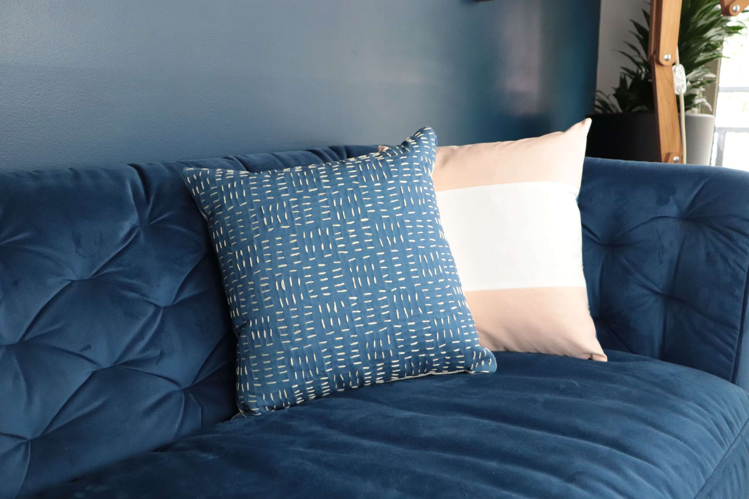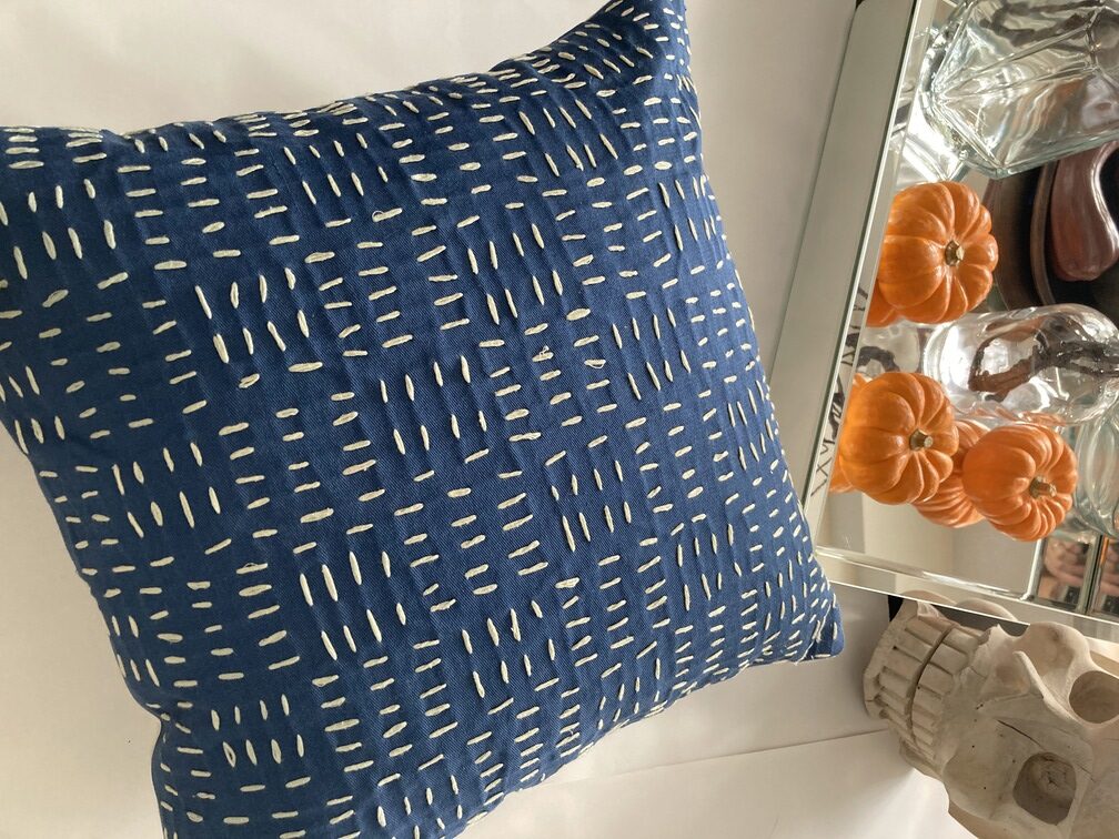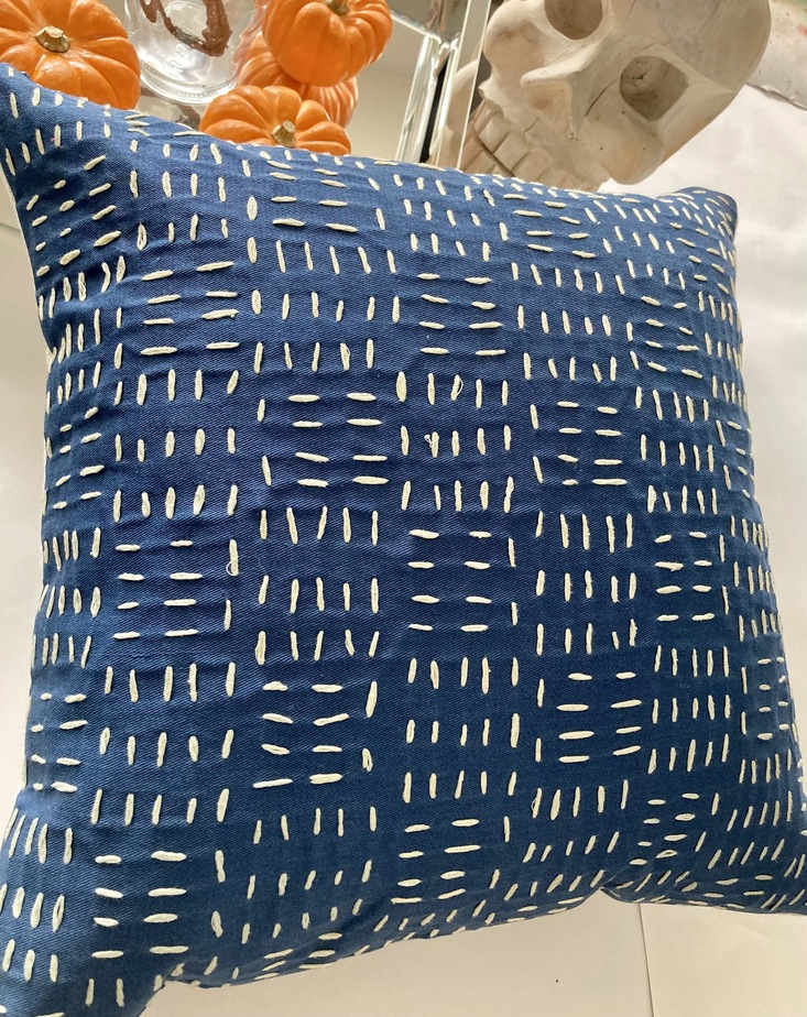 Renueva la estética de tu hogar con nuestro encantador cojín sashiko rayas. Con un fondo azul sereno y líneas en tono hueso, este cojín agrega un toque de estilo y sofisticación a cualquier espacio.