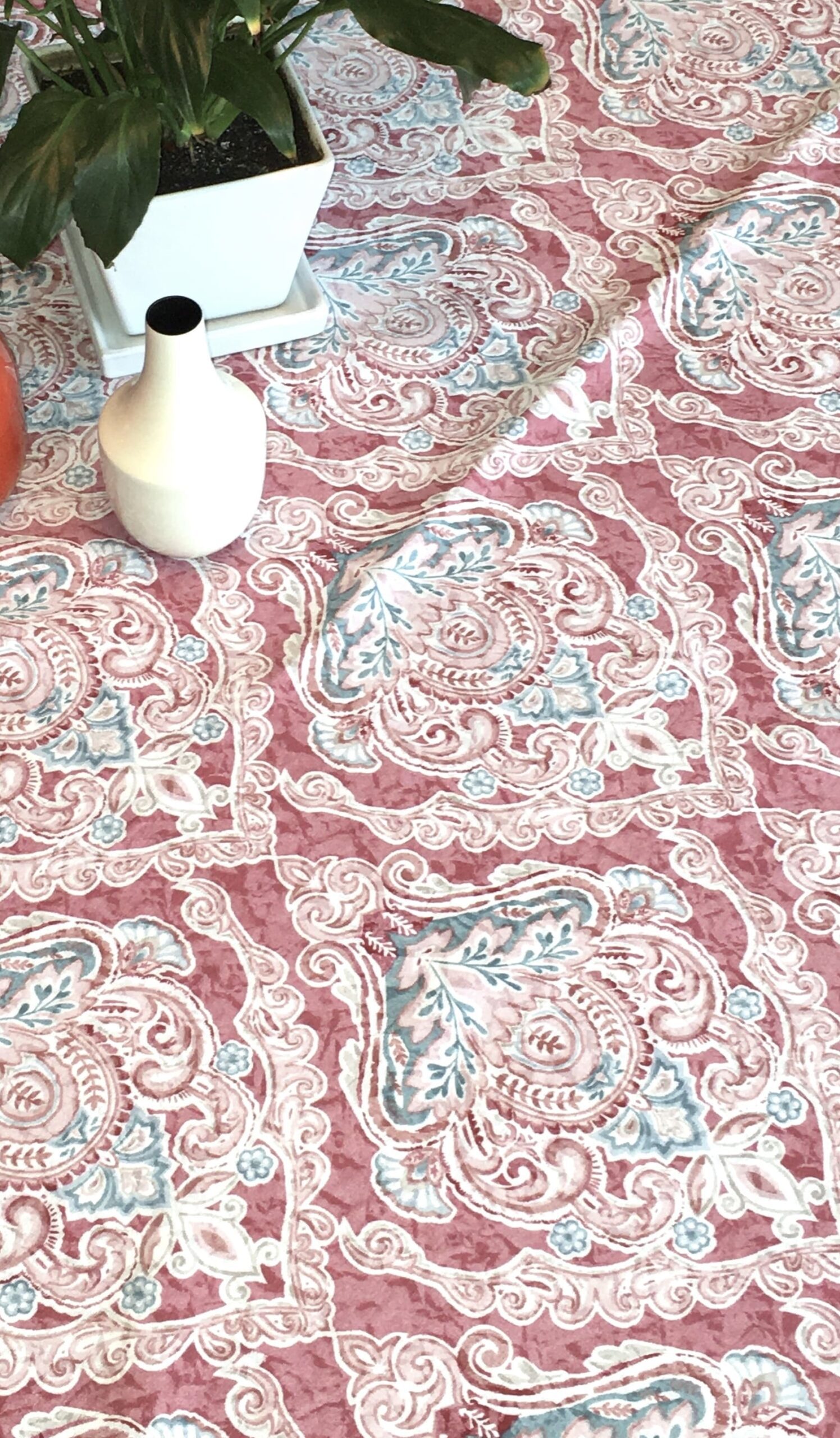 Dale un toque de elegancia y estilo a tu mesa con nuestro hermoso mantel cuadrado con borde rosa. Este mantel presenta un encantador estampado de figuras en tonos rosa y azul, que agregará un aire de sofisticación a cualquier ocasión.