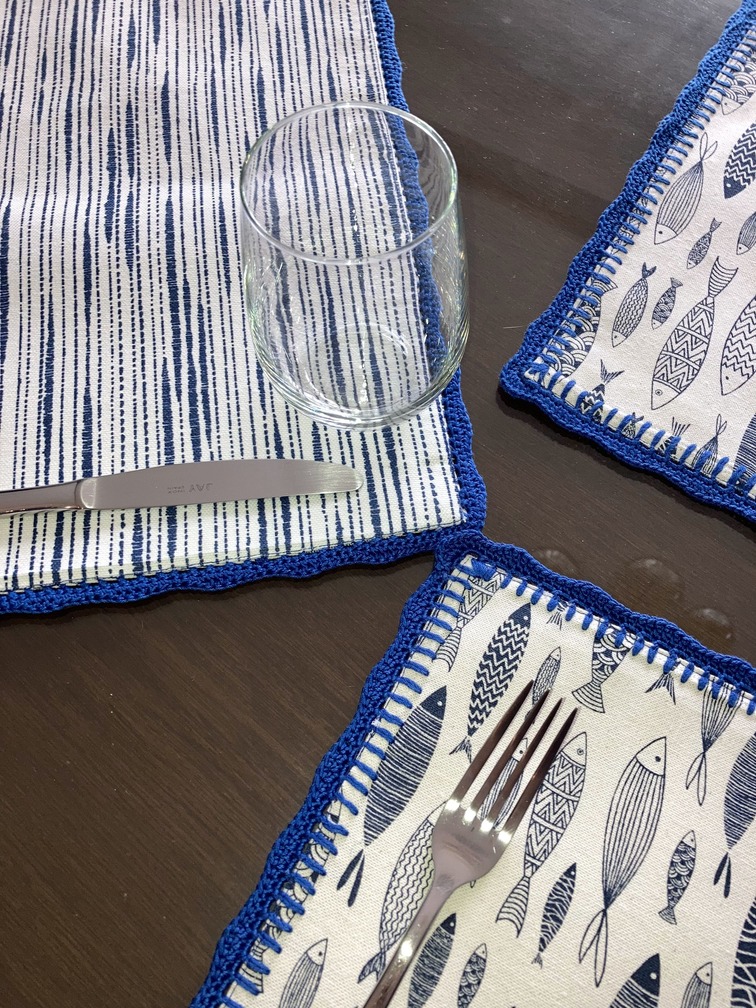 Renueva tu mesa con estilo y frescura marina con nuestro encantador set de manteles individuales peces. Este set de seis manteles individuales ofrece una versatilidad única, ya que cada uno presenta un diseño de doble vista: peces en un lado y rayas en el otro, lo que te permite cambiar la apariencia de tu mesa según tu preferencia o la ocasión.